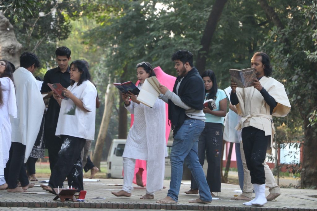 বিশ্ববিদ্যালয় এলাকায় ভিন্ন আঙ্গিকে পারফরম্যান্স আর্ট উপস্থাপন করেন ৪১ জন শিল্পী।
