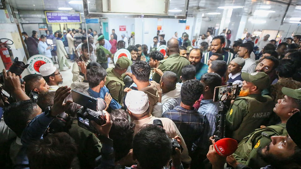 ঢাকা মেডিকেলের জরুরি বিভাগের সামনে প্রচণ্ড ভিড় দেখা গেছে।